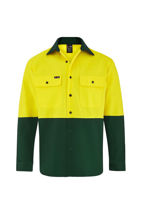 RIGGERS HI VIS ULTRA COOL LONG SLEEVE 100% COTTON VENTED SHIRT TWO TONE