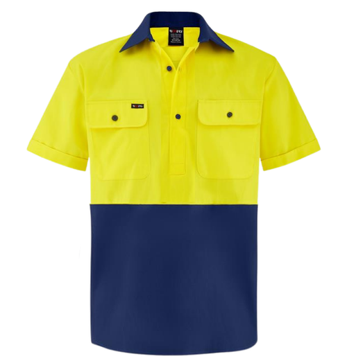 RIGGERS HI VIS SHORT SLEEVE CLOSED FRONT 100% COTTON DRILL SHIRT TWO TONE